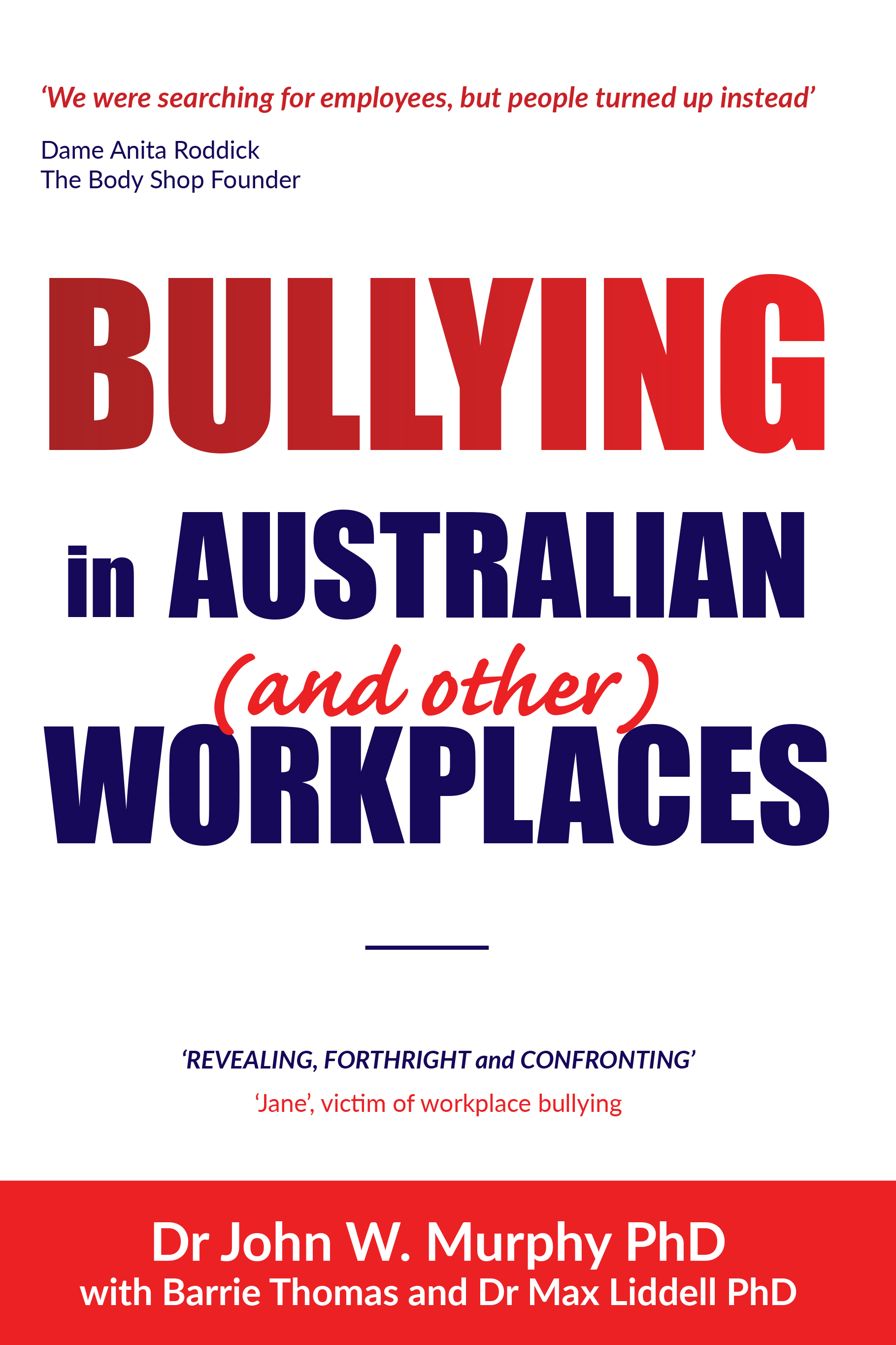 Bullying in Australian (and Other) Workplaces by Dr John W. Murphy with Barrie Thomas and Dr Max Liddell is available at leading booksellers worldwide or ask your favourite bookstore.